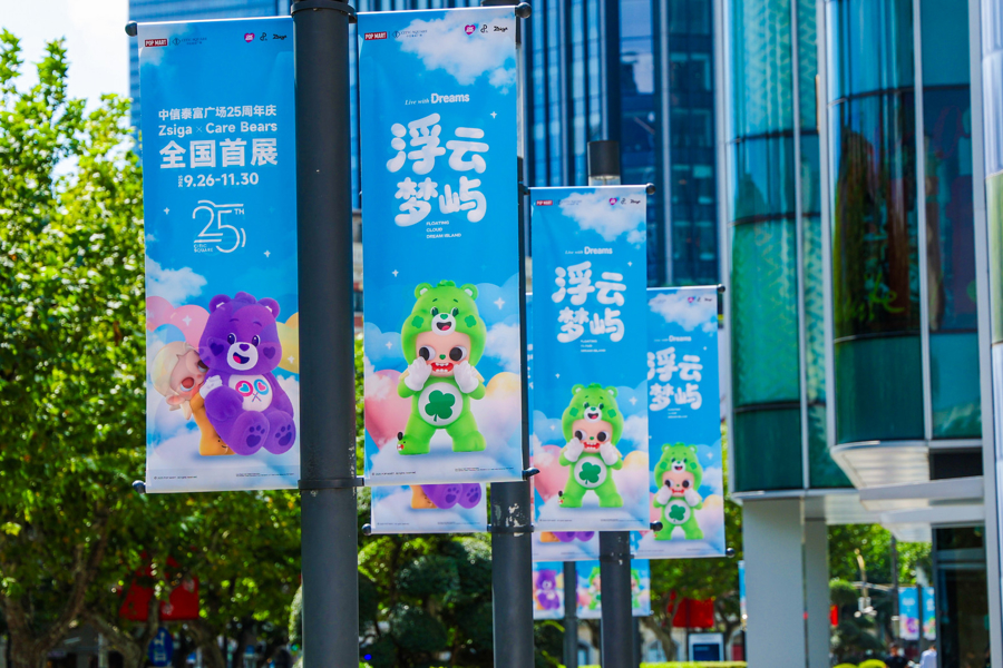 伴随着中信泰富广场25周年庆正式启幕,Live with Dreams主题派对暨POP MART快闪店渲染出梦幻氛围感,一场潮流融汇的盛宴在“梦剧场”上演。POP MART旗下高人气原创IP形象Zsiga联动全球潮流ICON Care Bears,在中信泰富广场举办Zsiga X Care Bears全国首展,“浮云梦屿”发出限时召集令,打开现实版“寻梦环游记”。